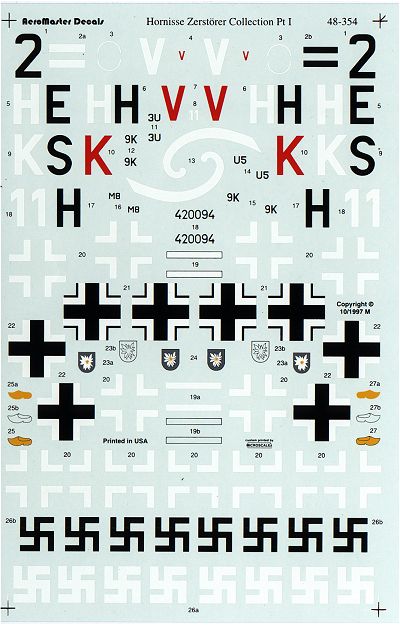 Aeromaster sheet 48-354; Me-410 Hornisse Zerstorer Collection Part 1