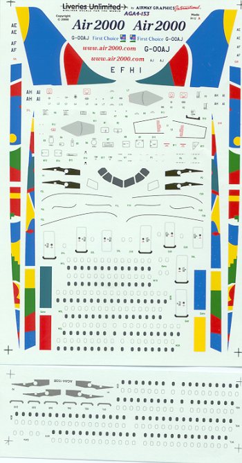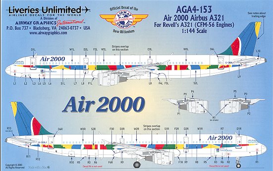 There is a full painting diagram for wings and horizontal stabilizers on the back of the instruction sheet. The sheet also cautions that not all Revell A.321 kits have the CFM-56 engines so you need to be sure that the one you buy has these engines. There are additional decals included as not all Air 2000 aircraft are exactly the same. The best thing is for you to have a photo of the plane you are going to model. LU also includes an additional sheet with slightly different colored engine pylon decals and window decals.