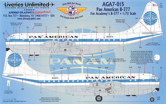 The Academy Boeing 377 Stratocruiser has been on the market now for about 3 months. Those who have built or started to build the kit are suitably impressed with the kit, but have been clamoring for some aftermarket decals. Apparently the kit ones do not go on too well or the builders just want to have aftermarket ones! Here is a link to a preview of this kit.