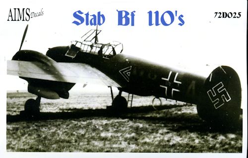 AIMS next sheet is for the Bf-110. This sheet is 1/72 scale and includes all of the same options that are on the 1/72 sheet plus one all black Bf-110C night fighter not shown on the profiles below. Thanks to the bevy of good 110 kits available to the 1/72 modeler, it will not be difficult to find a kit to use on the option of your choice. Airfix, Eduard, Italeri and others make pretty much every variant except the A, B and F versions. In line with the previous offering, this sheet covers airplanes operated by the geschwaderstab or the headquarters flight if that is easier to say.