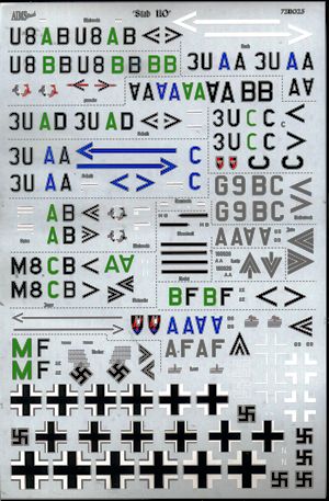 With some of the options, the plane is the same, but with a few differences such as additional paint details or a change of camouflage scheme. Each option has a considerable amount of information to go along with it, including a reference, so you know that these have been well researched. The decals themselves are superbly printed by Cartograf so you know there are among the best in the industry. I have darkened the sheet to make the white bits easier to see. A sheet well worth picking up if you have any 1/72 110s in your collection.