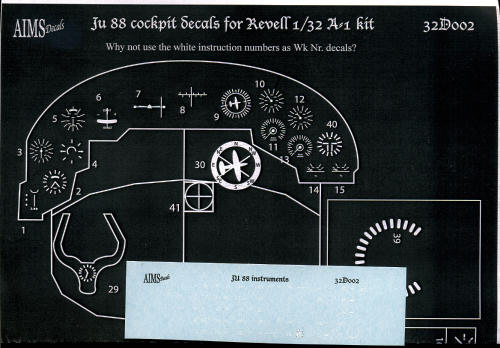 This particular sheet provides instrument and cockpit decals for the RoG Ju-88A. These markings are easy to apply once the instrument face is painted black. Sorry that the white markings don't show that well on the sheet, but from what you can see of the instructions, they should look great. The instruction guide is huge and provides easy ID of where these are to be attached. The decals themselves are superbly printed.