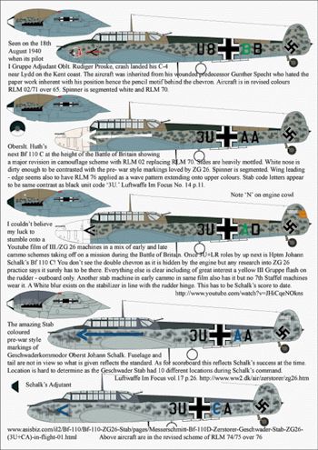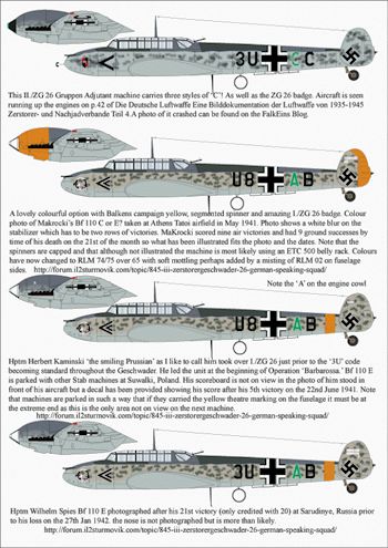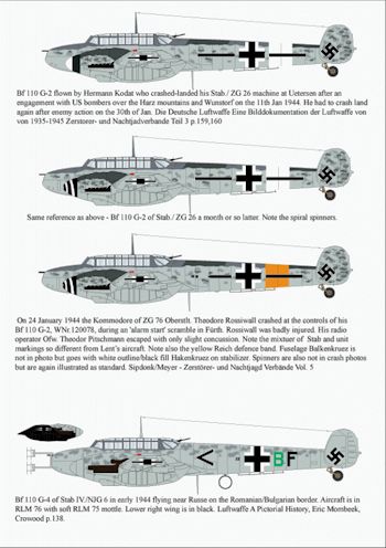 With some of the options, the plane is the same, but with a few differences such as additional paint details or a change of camouflage scheme. Each option has a considerable amount of information to go along with it, including a reference, so you know that these have been well researched. The decals themselves are superbly printed by Cartograf so you know there are among the best in the industry. A sheet well worth picking up if you have any 1/48 110s in your collection.