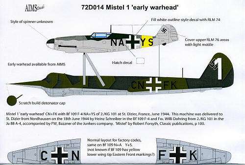for an early warhead Mistel 1. The markings are for an RLM 74/75/76 Bf-109F-4
