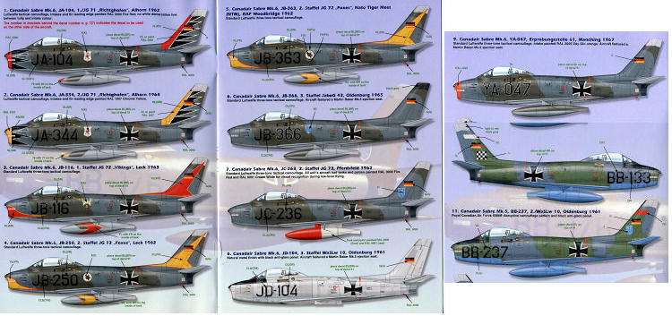 Option 9 is from Erprobungsstaffel 61 in 1967. This one has a daglo orange. This and all the previous aircraft are Sabre 6s, some with Martin Baker mk5 ejection seats. The aircraft notes will point those out.