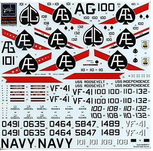 It covers the full history of the Phantom II and VF-41. There are three F-4B options, all on the USS Independence from 1964and 1965, which includes their Vietnam cruise of 1965. There is a single F-4J from the 1970 Med cruise aboard the USS FDR. Then, like many Phantom units, the squadron transitioned to the F-4N which many J jocks felt was a bit of a step backwards as the Ns were simply upgraded B models. The two we are offered are the more colorful of the options with one being a Bicentennial plane from 1976 and the other a CAG bird from 1977, still operating from the USS FDR.