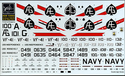 It covers the full history of the Phantom II and VF-41. There are three F-4B options, all on the USS Independence from 1964and 1965, which includes their Vietnam cruise of 1965. There is a single F-4J from the 1970 Med cruise aboard the USS FDR. Then, like many Phantom units, the squadron transitioned to the F-4N which many J jocks felt was a bit of a step backwards as the Ns were simply upgraded B models. The two we are offered are the more colorful of the options with one being a Bicentennial plane from 1976 and the other a CAG bird from 1977, still opoerating from the USS FDR.