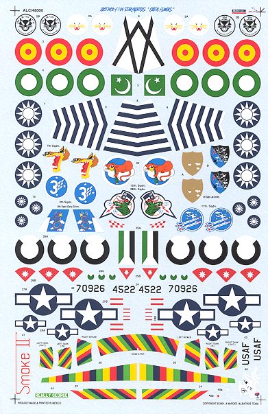 The sheet covers the F-104A/C/G and J versions. You get US F-104Cs, Taiwanese F-104As, Gs, and Js, Pakistani As, Jordanian As and Spanish Gs. This leaves a TON of other nations for future sheets if the need presents itself. In addition to a lot of different aircraft, you get three full decal sheets and five 'mini' sheets. The full sheets include insignia and color unit markings (which is shown), and two sheets of appropriately fonted letter/numbers and data markings. The smaller sheets include some items in color that wouldn't fit on the larger sheet and probably just made sense to do in smaller sections.
