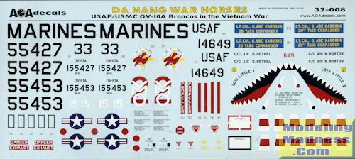 AOA Decals has added another nice set of markings for the KH 1/32 OV-10A Bronco. This set includes five options for three aircraft based at DaNang.