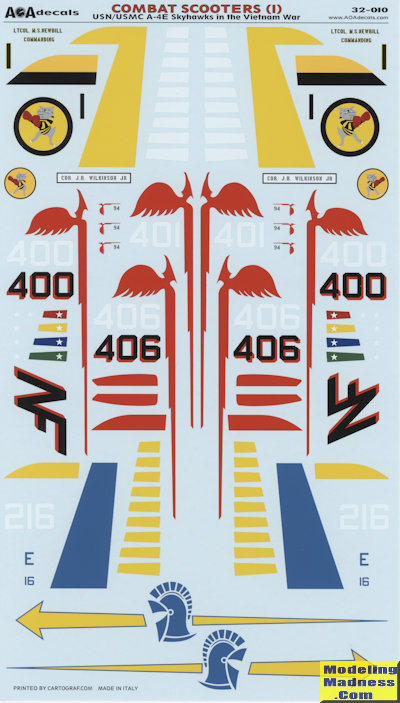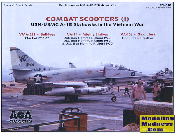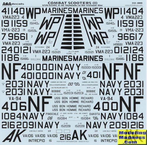 AOA Decals moves to another type that saw a lot of service in Vietnam, the A-4 Skyhawk. This is the first sheet and is designed for the Trumpeter kit. Does it mean it won't work on the Hasegawa version? I do not know, but it may well require some fiddling about to get things like the rudder markings to fit properly. I know that I plan to use this on my Hasegawa Scooter.