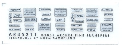 This final new set from Archer Fine Transfers is an interior placard set for various military vehicles. These are all provided on a white background and as you can see from the enlarged image above, are all finely printed and actually legible! There are several multiples on the sheet, which means you can do several vehicles with it. Little things like this really add to the realism of your next model.