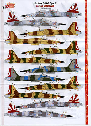 sheet from Authentic Decals covers six USN aggressor aircraft from VFC-111