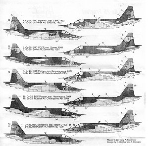 White 07 is from Borysoglebsk AB in 2004 with the crow marking carried by many Su-25s