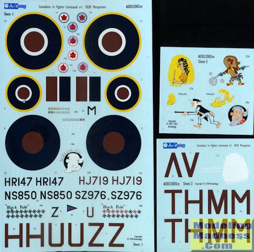 As usual with Aviaeology decals, the research is superb and the instructions provide tons of modeling notes and some drawings to help you differentiate between the earlier and later versions of the FB.VI. The decals themselves are superbly printed and the nose art is offered separately. There are markings enough for one plane. Stencils will need to come from the kit decals or one of Aviaeology's separate Mossie airframe sets.