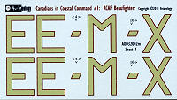 There are four individual aircraft options on the sheet with some planes going through several code and code position changes. All are TFX versions and none have the dorsal extension. You have basically options for aircraft lettered M, H, G and X. The comprehensive instructions provide details for each one in terms of their equipment. It has been brought to my attention that the Revell Beaufighter is a very early Mk. I, and that to do any of the aircraft on this sheet would require the modeler to scratch/convert the horizontal stabs to the longer-span later versions, as well as sand down/polish out the windshield to get rid of the early configuration. This may have been mentioned in the instructions, but I missed it. Thanks to the way that Aviaeology does their instructions, it is not practical to show all the options, but you can get a good ideal from the cover and the decals.
