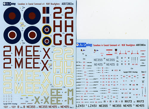 The sheets themselves are superbly printed and in perfect register. This set is to be used on pretty much any appropriate 1/72 kit. I know that Airfix and Revell/Matchbox as well as Hasegawa do Beaufighters. Be sure it is the later TF.X as this will require larger, angled stabs and a different windscreen from the early versions. If buying the Hasegawa Beaufighter, then grab a set of Quickboost exhaust as the Hasegawa ones are a joke.