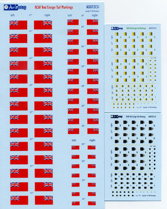Fortunately for RCAF fans, there is a book by Pat Martin that is most useful for this so is worth seeking. In all, it is a great sheet that offers three major sizes of the ensign as well as infomation on which aircraft generally used which size. So if doing a custom set of markings or just wanting to replace poorly done kit versions, this is a set you really need to have.