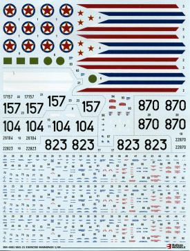 The full color instructions offer a full data placement guide as well as a paint chart that lists over a half dozen paint brands, a nice touch. The set also includes complete stencils for the airframe and for the bang seat. There are enough markings and stencils to do three complete aircraft.
