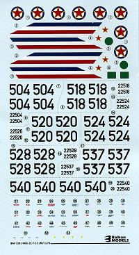 Then instructions offer a full data placement guide as well as a paint chart that lists over a half dozen paint brands, a nice touch. The recommended kit for this is the very nice Revell 1/72 MiG-21F-13 that should still be available, though you could probably use others as well.