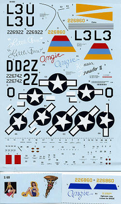 Finally we have "Little Ann", as flown by an unknown pilot. This one has the remnants of invasion stripes as does the first option. These will also need painted. For the tail, use the markings with the darker blue. Note also that the unit codes are not exactly the same size so be sure to follow instructions on which go with which aircraft. This one has a darker blue in the fin stripes and that is provided on a smaller sheet along with a darker blue 'angie' for the previous plane's name.