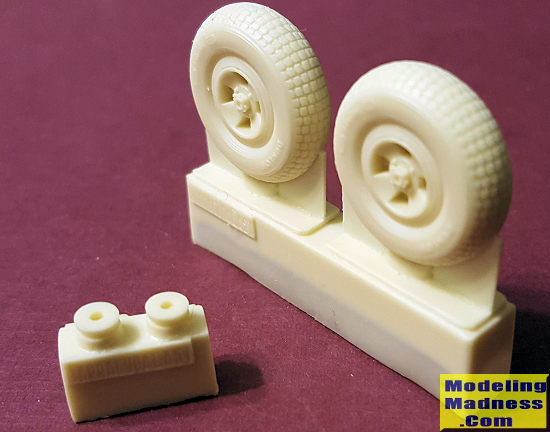 As with the other scales, this set includes the block tread on four spoke Spitfire wheels. These tires are mostly post war as they were used where the planes were operating from paved runways. This set is pre-drilled for the Revell kit and you have inserts for others (though they may fit the Tamiya kit as they are).
