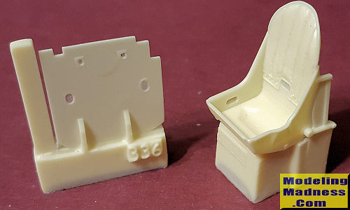 This latest 1/32 upgrade part from Barracuda Studios is for the Revell Spitfire IX. This set has an accurate set with the proper backpad and it also includes an armor plate. Somehow, Revell missed the armor, which probably was a result of using a warbird as a basis for the kit. Now you can have a proper wartime Spit IX. Like all their products, the casting is flawless and you get instructions.