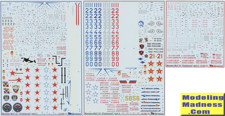 Recently I purchased the Zvezda 1/72 MiG-31 as I did not have the type in my collection and had heard that the Zvezda was one of the more accurate kits. As is my wont, I then started looking around for aftermarket decals. I knew that these planes were anything but flashy, but still wanted something better than the kit decals. An internet search came up with several possiblities and this one looked to be the best. I duly found a place selling the sheet and ordered in.