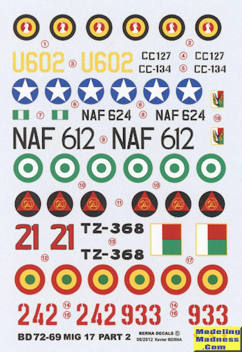 Berna Decals 7269 MiG-17 African Air Forces Part 2