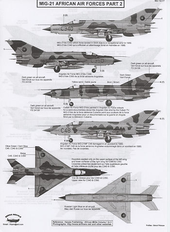 the previous sheet, here are more semi-exotic schemes for MiG-21s from African