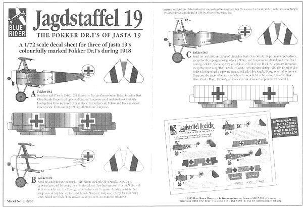 Blue Rider BR 237 for Jasta19 Fokker Dr.I |