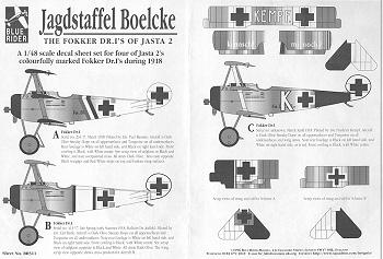 Blue Rider has produced several sheets for the DML/Dragon kits released in the last few years or so. This particular sheet is for their Fokker Dr.I. It covers three aircraft.