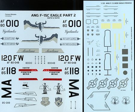 This particular set is for two ANG units. The first one is the 186 FS/120 FW, Montana ANG based at Great Falls. This unit was previously equipped with the F-16, but with many regular USAF units moving to the F-22, that left a lot of F-15s available for the ANG so Montana got the Eagle.
