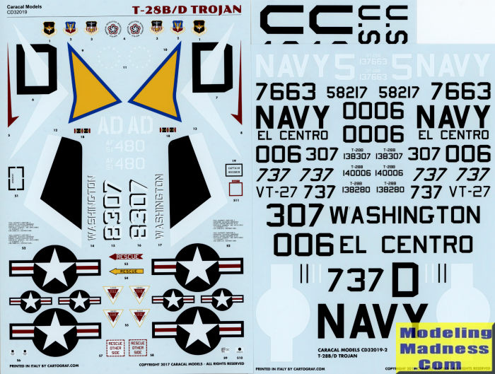 Caracal Models decal sheet is for the big Kitty Hawk 1/32 T-28B/D Trojan. While