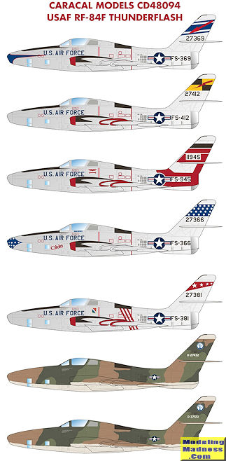 This set seems to pretty well cover all the USAF recce wings that flew the type with five of the seven options in the nice colorful schemes these planes wore.