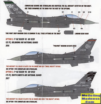 The sheet has markings for three planes. One is a Block 42 plane with the 112 FS, Ohio ANG. this is a small mouth plane with the P&W engine.