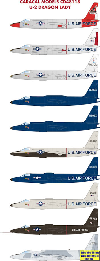 Thanks to the lack of a currently available aftermarket sheet, modelers have been somewhat stifled on markings options, but that is now a thing of the past with this sheet from Caracal Models. There are ten different markings options for the early U-2 in a variety of schemes. Note that most of the schemes we thought were black are actually a very dark blue.