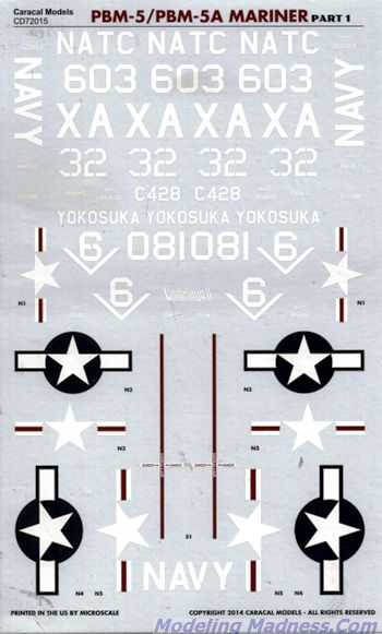There are enough insignia to do one wartime and one post war aircraft. I have darkened the sheet significantly so you can see the white bits. As usual, the decals are superbly printed by Microscale and Caracal Models provides a full color instruction and placement sheet.