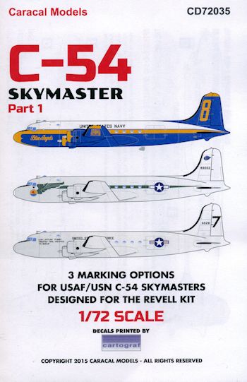 The decals are superbly printed by Cartograf and Caracal Models provides full color painting and markings instructions. Any of these schemes will look nice on your big Skymaster.