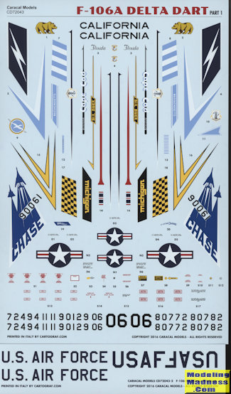 The decals themselves are printed by Cartograf so you know you are getting the best. I'm sure that the second sheet will include additional ANG markings and I would very much like to see information as to whether the planes carried the gun pack or not. Thanks to the wing tanks, it is often difficult to see from photos whether it was carried. It would also be great if some early schemes were included in a future sheet as the Meng kit offers the ability to build the 106 as it was at any time of it operational life. Instructions are in full color and include some information on each aircraft.