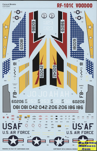 latest sheet from Caracal Models is for the recent Valom 1/72 RF-101C. As with