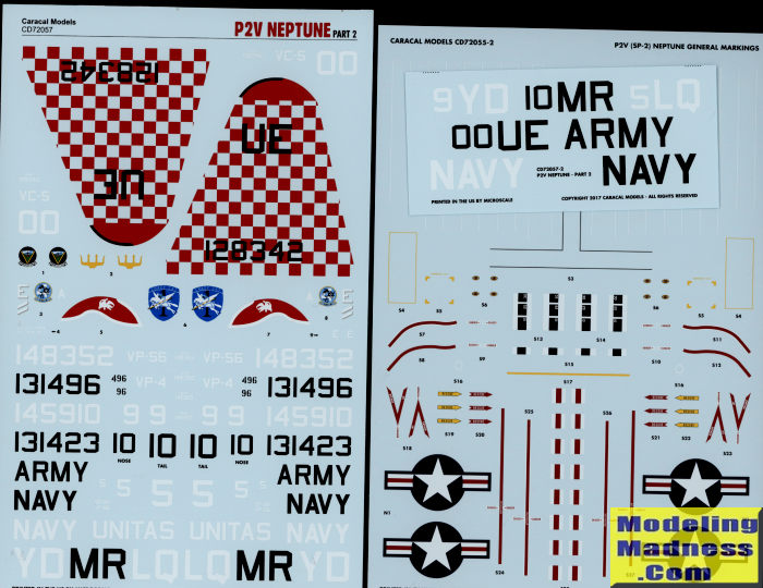 For their second Neptune sheet, Caracal Models gets even more esoteric. For sure, it includes some standard patrol planes, but also some that were used for special ops during Vietnam. As with the previous sheet, the kit du jour is the Hasegawa version and for some of these options, a bit of modification will be needed. Not only does the addendum sheet in the instructions help, but Caracal directs you to their reference site for more information on upper and lower markings placement.
