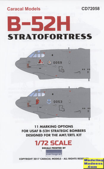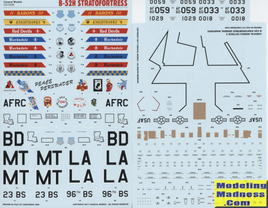 There are three bomb wings flying the type; one in Minot, ND and two at Barksdale LA. One of the LA units is a reserve wing. All of these are covered in this set. All of the options are painted overall gunship grey.