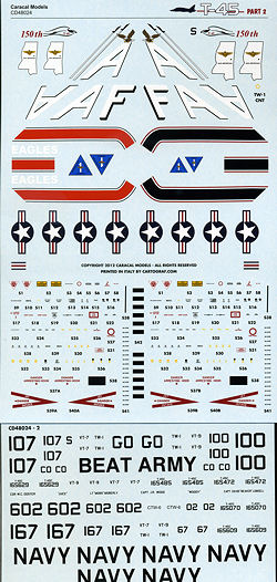 Next is the TW-1 commander's aircraft, assigned to VT-7. This aircraft has a blue fuselage band. Two slightly different designs are provided for the CO's plane from 2007 and 2011. This option has a Beat Army marking from 2007/8 that goes on the underside of the fuselage.