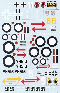 offers enough insignia to do one German and two British He-162s.