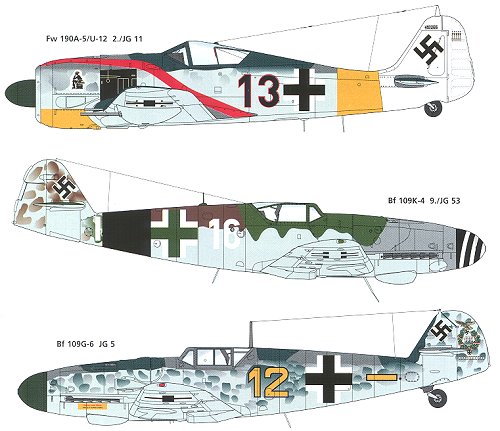 Next is a Bf-109K-4 from 9./JG 53 in the typical mélange of late war colors. Hasegawa's 109K kit is probably your best choice.