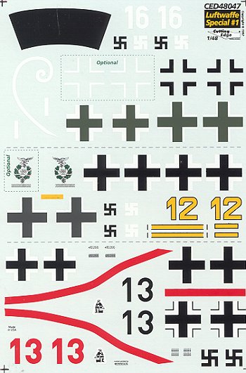 It seems that one can never have enough Luftwaffe sheets and Cutting Edge offers us yet another one. This one combines three unrelated subjects on the same sheet. Because the markings are not very intensive or complicated, there are complete common markings for all three subjects.