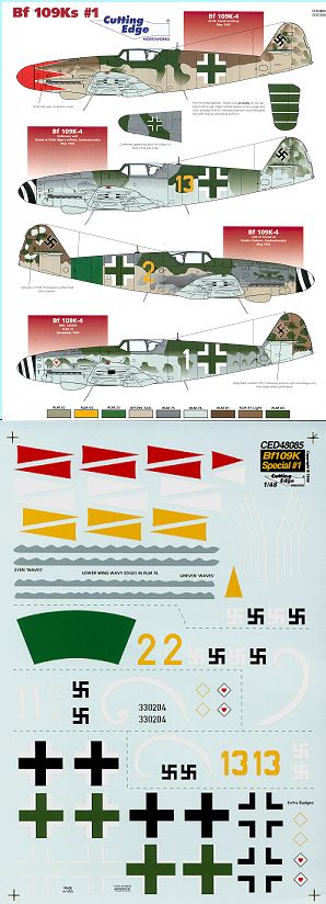 While there are those that complain that there are already too many Bf-109 sheets, I don't agree, and neither does Cutting Edge, who provide us with a great sheet for the late war Bf-109K-4. For those of you that have the JaPo book on the 109K, you will be somewhat familiar with these schemes as they all come from that book. If you don't have it….get it!