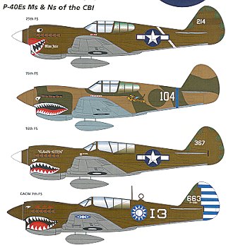Ed Rector's P-40E from the 76 FS/23 FG is an ex-AVG plane painted in US equivalents of RAF colors.