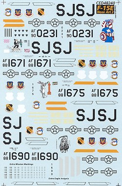 These markings are available in 1/32 on sheet 32044 but without the last aircraft. For the 1/32 version, the ultra-expensive Tamiya F-15E is the recommended kit, though the markings will probably fit the Revell kit for those of us who are a bit more frugal!