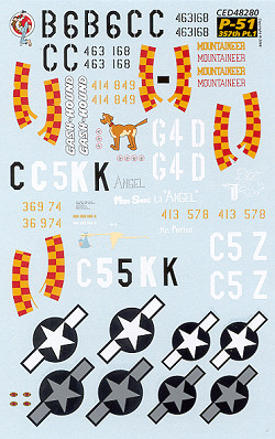 are four options on this sheet and the recommended kits are the Tamiya P-51D and